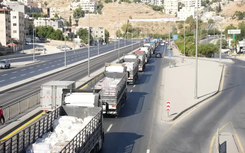 عبور قافلة مساعدات أردنية مكونة من 38 شاحنة لـ غزة