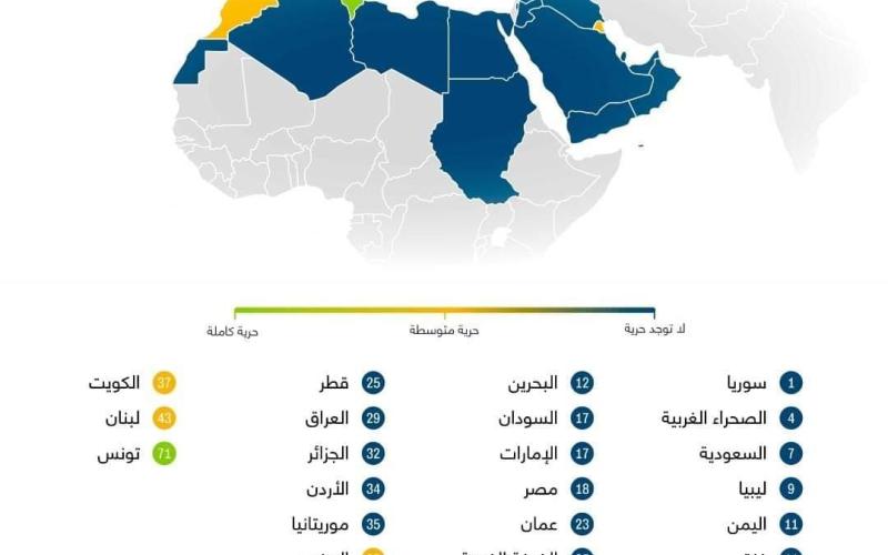 في حين صنف التقرير تونس ضمن البلدان الحرة، وهي الوحيدة ضمن الدول العربية التي حلت في هذه الفئة.