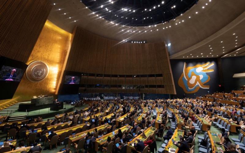 القرار الأول للجمعية العامة للأمم المتحدة في عامها التاسع والسبعون من تأسيسها الذي صادف يوم الثلاثاء الماضي الذي احياه الكيان الإستعماري الإسرائيلي العنصري الإرهابي بتصعيد إرتكابها مجازر دموية بحق الشعب الفلسطيني على كامل مساحة قطاع غزة وفي الضفة الغربية يعكس الإستراتيجية الإسرائيلية بتحد إرادة المجتمع الدولي بالمضي برفضه الإلتزام بميثاق