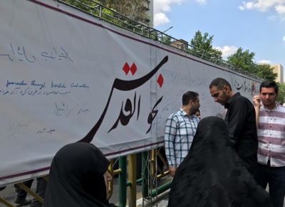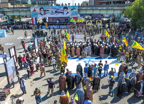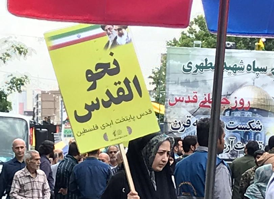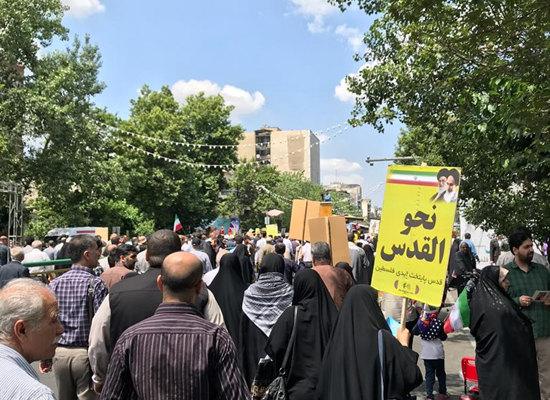 وذكر التلفزيون الإيراني، أن عشرات الآلاف من 950 منطقة من أنحاء إيران شاركوا في المظاهرات، حاملين لافتات "القدس العاصمة الأبدية لفلسطين" و"الموت لأمريكا"، و"لا لصفقة القرن".