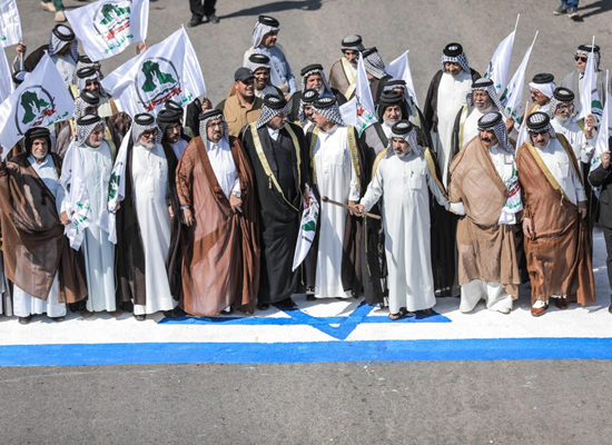 وفي بغداد، شارك المئات، في المسيرة التي انطلقت في منطقة "شارع فلسطين"، وكان من بين المشاركين شيوخ عشائر وفصائل من الحشد الشعبي، ومسؤولون محليون وأعضاء برلمان.
