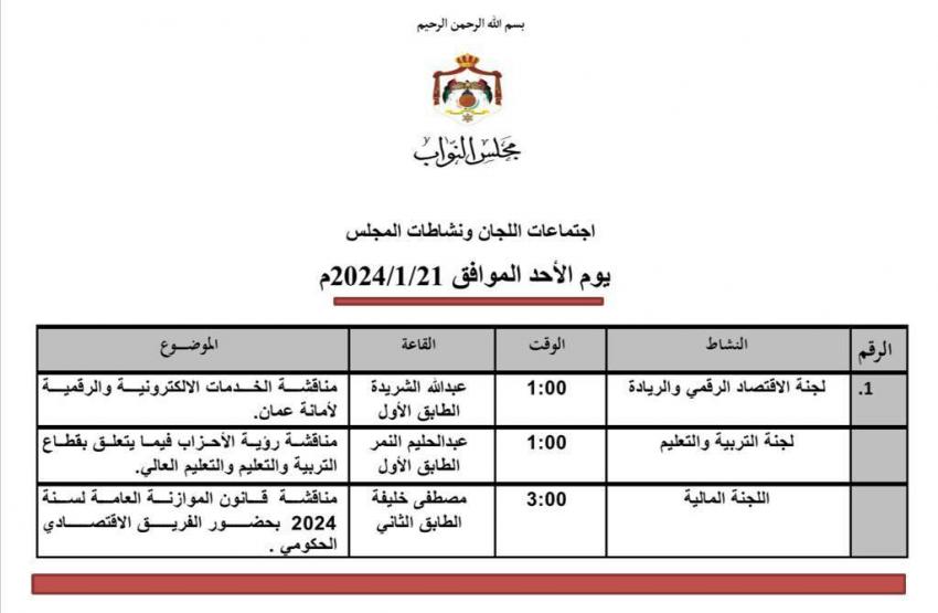 كما تناقش لجنة الاقتصاد الرقمي والريادة النيابية الخدمات الإلكترونية والرقمية لأمانة عمّان الكبرى.