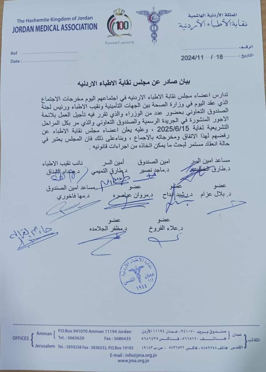 مجلس نقابة الأطباء يرفض اتفاق الحكومة حول (الأجور الطبية)