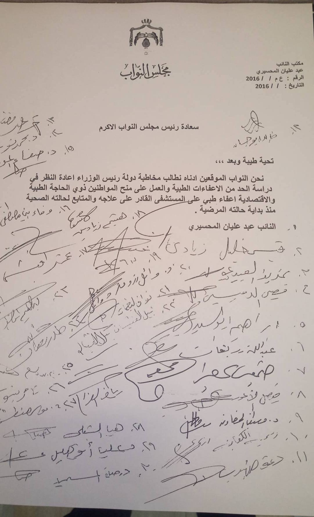 وقع 30 نائبا لرئيس مجلس النواب اليوم الثلاثاء تطالبه بمخاطبة رئيس الوزراء لإعادة النظر في دراسة الحد من الأعفاءات الطبية ومنح المواطنين أصحاب الحاجة الطبية و الأقتصادية اعفاء طبي للمستشفى القادر على علاجه.