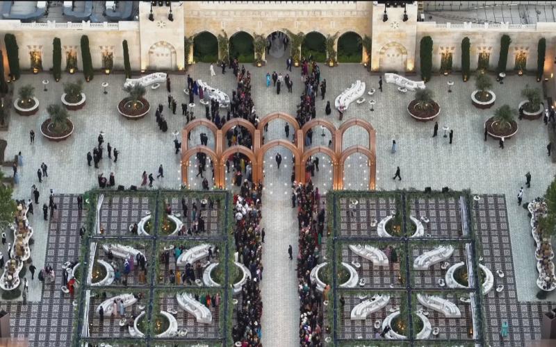 وسيتم الترحيب بالضيوف، وهم يتوجهون طريقهم إلى ساحة الاستقبال، بتقديم القهوة العربية التقليدية على أصوات موسيقى الناي والعود.