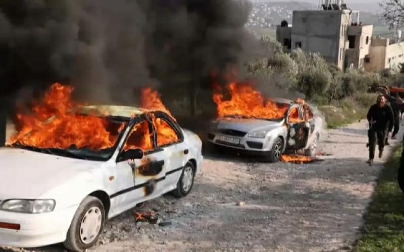 مستوطنون متطرفون يضرمون النيران بمركبات فلسطينية بنابلس