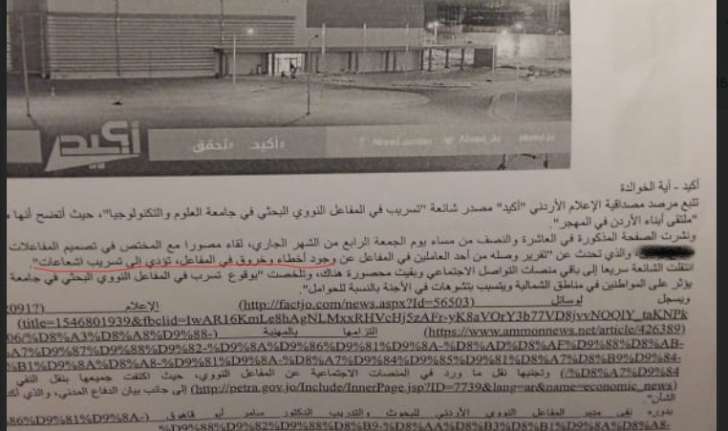 وقالت اللجنة في بيان صحفي الخميس، إن الحقائق التي تكشفت حول المشروع النووي "الوهمي" والذي ثبت أنه يستنزف المال العام تثير تساؤلات على رأسها: "من يستحق المحاكمة، المسؤول عن هدر مئات الملايين من الدنانير التي دفعت من جيوب الأردنيين لتسويق مشروع فاشل، أم من تصدى له وحذّر من خطورته وعدم جدواه وسوء ادارته؟".