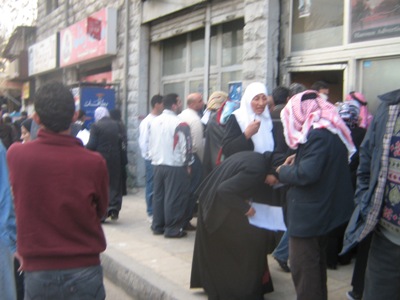 وتشهد المنطقة حالة زحام شديد بفعل تدافع المواطنين، الذين يعملون على ملء استدعاءات تفيد طلب مساعدات مالية بسبب المعاناة من الفقر الشديد وتوضح الحالة الأسرية، إضافة إلى تصوير الهويات الشخصية ودفاتر العائلة.