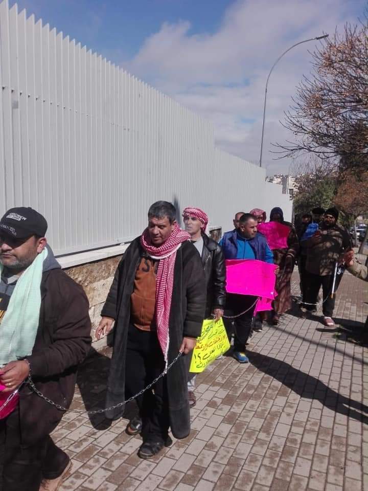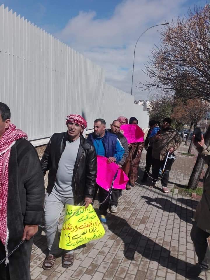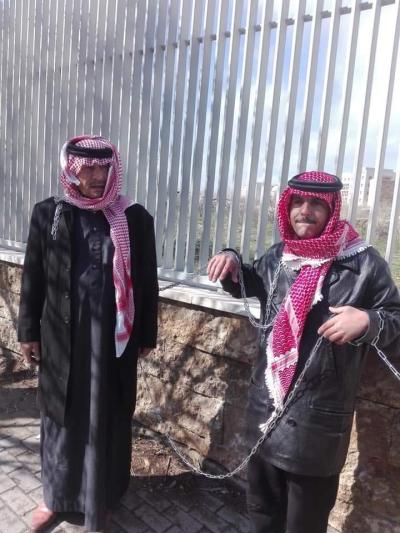 ناشطون في حراك بني حسن يقيدون انفسهم بالسلاسل