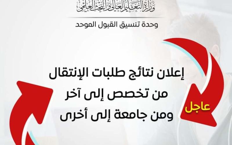 نتائج طلبات الإنتقال من تخصص لآخر ومن جامعة لأخرى