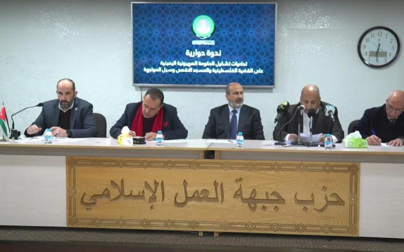 أكد المتحدثون في الندوة التي أقامتها لجنة فلسطين والقدس في حزب جبهة العمل الإسلامي على خطورة ما يتعرض له الأردن من استهداف من قبل المشروع الصهيوني لا سيما في ظل حكومة نتنياهو الاكثر تطرفاّ والتي تسعى لتصفية القضية الفلسطينية وتهديد المصالح الأردنية، ما يتطلب رؤية فلسطينية وأردنية مشتركة في مواجهة هذه التهديدات، وبناء استراتيجية وطنية للتعامل مع الإحتلال على أساس تمتين الجبهة الداخلية وانسجام الموقف الرسمي مع الشعبي في مواجهة المشروع الصهيوني ودعم صمود الشعب الفلسطيني.