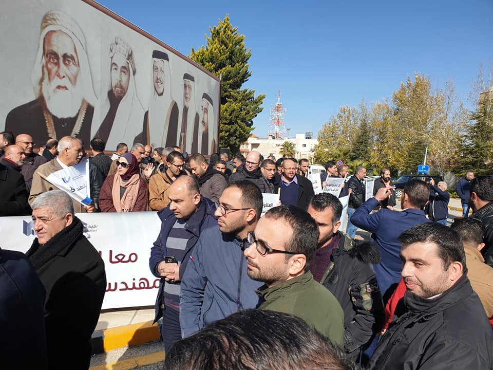 اعتصمت نقابة المهندسين الثلاثاء أمام وزارة الأشغال العامة والإسكان؛ للمطالبة بإقرار علاوة فنية 180% للعاملين في القطاع العام، ودعت النقابة الاثنين المهندسين العاملين في القطاعين العام والخاص للمشاركة في الاعتصام.