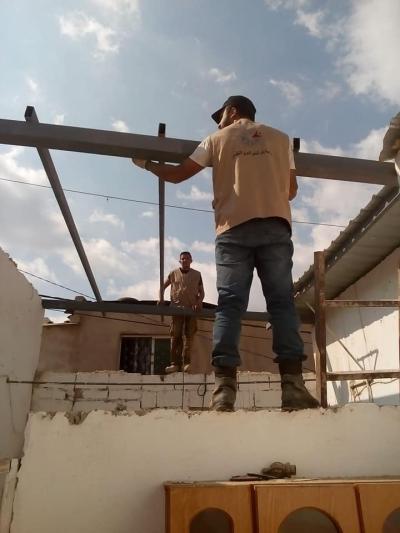 سعيد راشد فيضي أحد المتطوعين في جمعية باب الخير، يقول لـTRT: "تَوجَّهنا إلى مخيَّمَي حطين وغزة للاجئين الفلسطينيين، لترميم المنازل، لكن وجدنا أن هذه المنازل المبنية من الطوب دون أساسات ولا تتحمل بناء سقف أسمنتي، لذا استبدلنا بالأسقف ألواحاً معدنية جديدة".