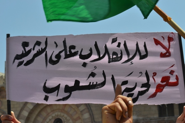 وندد المشاركون بقيادة الجيش المصري وعلى رأسها الفريق عبد الفتاح السيسي، معتبرين أنه قام بانقلاب عسكري على شرعية الرئيس مرسي.