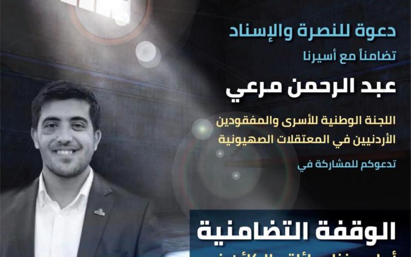 دعت اللجنة الوطنية للأسرى والمفقودين الأردنيين في المعتقلات الصهيونية للمشاركة في الوقفة التضامنية التي ستقيمها أمام منزل الأسير عبدالرحمن مرعي.