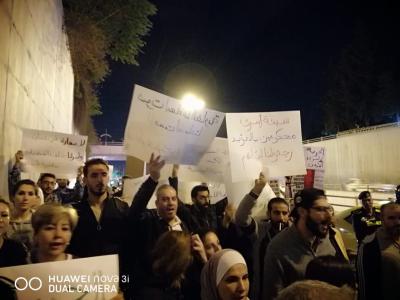 ومنعت قوات الأمن المعتصمين من الاستمرار في وقفتهم على الدوار الرابع واجبرتهم على نقل مكان الإعتصام للساحة المقابلة لمستشفى الأردن.