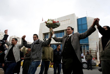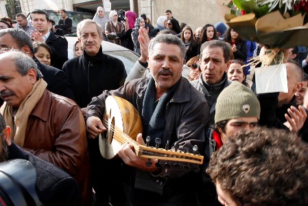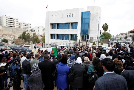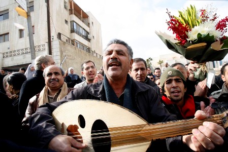تجمع ما يقارب 150 مواطن حاملين باقات من الورود الحمراء أمام السفارة التونسية في عبدون مرسلين تحية للشعب التونسي بعد إسقاطه لنظام الحكم في تونس .