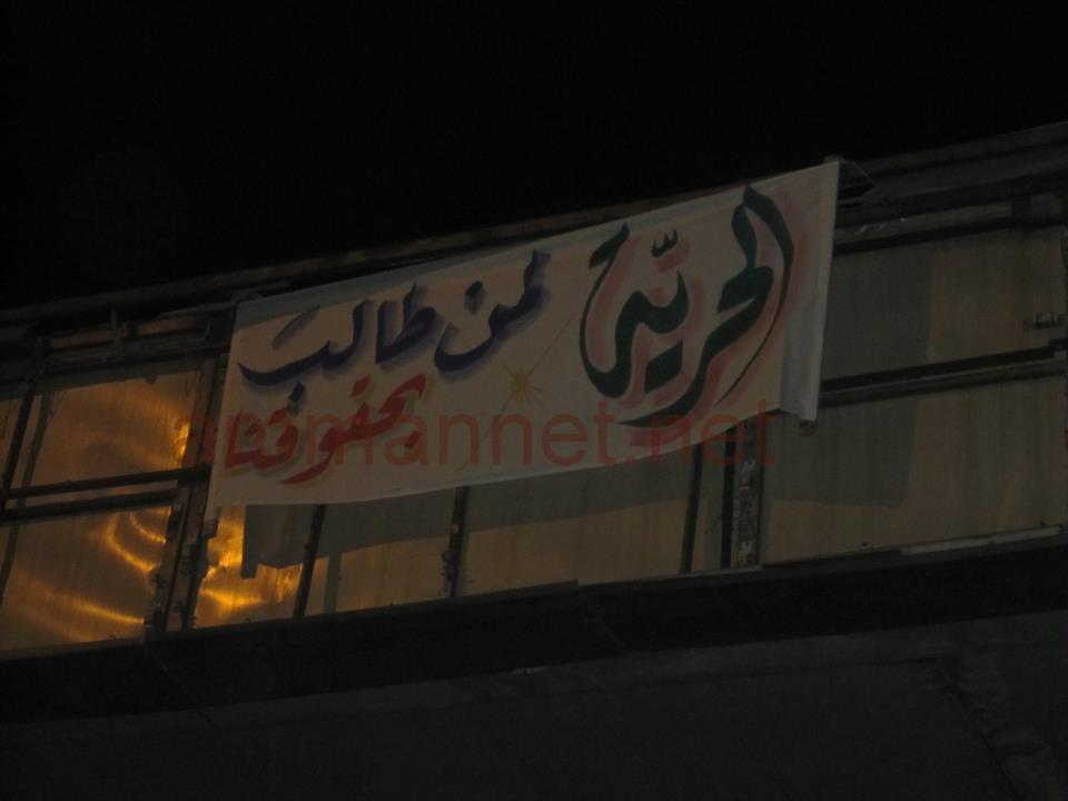 وزع منظمو " أسبوع الحرية" خمس يافطات كبيرة في خمس مناطق مركزية في العاصمة عمان ضمن فعاليات تنادي بالإفراج عن معتقلي الحراك وتتضامن معها تم اطلاقها يوم الأحد.