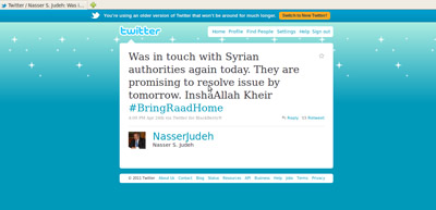 ومضى على ما كتبه وزير الخارجية سبعة أيام وما يزال الشاب معتقل، دون أن يرد جودة على التعليقات والاستفسارات التي تنهال على صفحته على " تويتر" من أصدقاء قعوار الذين أطلقوا " هاتش تاغ" على موقع التواصل الاجتماعي "تويتر" وصفحة على موقع التواصل الاجتماعي" فيس بوك" لمتابعة قضيته.