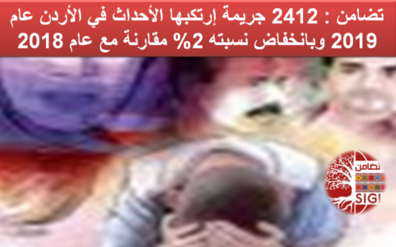 أكد التقرير الإحصائي الجنائي لعام 2019 والصادر عن إدارة المعلومات الجنائية في الأردن على أن الأحداث إرتكبوا خلال عام 2019 ما مجموعه 2412 جريمة منها 951 جريمة جنائية، و 1461 جنحة، بإنخفاض نسبته 2.2% عن العام السابق حيث كان مجموع الجرائم الجنائية والجنحوية لعام 2018 حوالي 2464 جريمة.