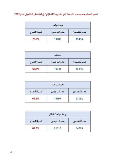 وبينت الوزارة في بيان صحفي اليوم الخميس، أن نسب النجاح العامة، ونسب النجاح في المباحث، وتداريج المعدلات كما هو مبين تاليا: