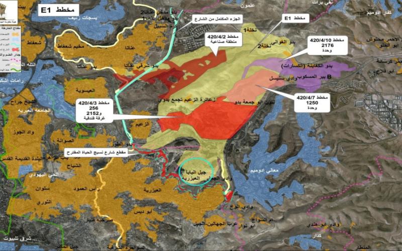 وبحسب نشرة أصدرتها هيئة مقاومة الجدار والاستيطان، صادقت حكومة الاحتلال، على مخطط"E1" الاستيطاني، الذي يحمل رقم (4/420) عام 1999، على أراضٍ تبلغ مساحتها 12,000 دونم، أعلنت معظمها "أراضي دولة"، وأصبحت فيما بعد تابعة لمستوطنة "معاليه أدوميم".