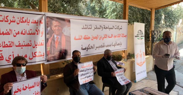 سلمت شركات سياحة مفاتيحها في مقر جمعية وكلاء السياحة والسفر الاردنية وإقامت وقفة احتجاجية أمام مبنى الجمعية. وقال جمال الضامن نائب رئيس جمعية شركات السياحة والسفر أن القطاع السياحي يدخل السنة الثانية