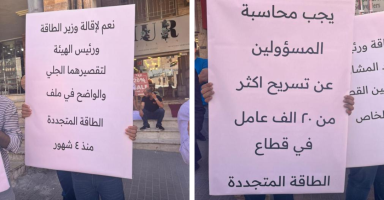 بعد توقف أعمال قطاع الطاقة المتجددة على مدار الأشهر الثلاثة الماضية بسبب إصدار قانون الطاقة المتجددة دون إصدار النظام الخاص به، ينظم مستثمرون في القطاع اعتصاما مفتوحا صباح غد الخميس أمام هيئة الطاقة