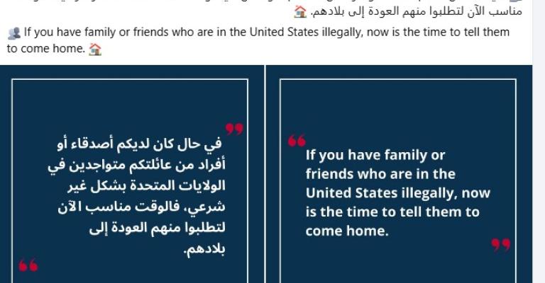 دعت السفارة الأمريكية في الأردن المواطنين الأردنيين إلى التواصل مع أفراد عائلاتهم أو أصدقائهم المقيمين في الولايات المتحدة بشكل غير قانوني، وحثهم على العودة إلى بلادهم، معتبرة أن "الوقت مناسب الآن"
