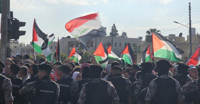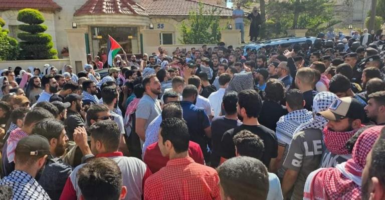 لبت جماهير كبيرة من الأردنيين، الأربعاء، دعوة "لجنة الملتقى الوطني لدعم المقاومة وحماية الوطن" للإضراب العام و"الزحف" باتجاه السفارتين الإسرائيلية والأمريكية في عمّان "للتعبير عن الموقف الأردني