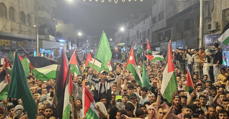 انطلقت من أمام المسجد الحسيني بوسط البلد في عمان بعد صلاة المغرب اليوم الثلاثاء، مسيرة شعبية حاشدة تضامنا مع الأشقاء الفلسطينيين بقطاع غزة في مواجهة العدوان الإسرائيلي الوحشي الذي يتعرض له القطاع منذ