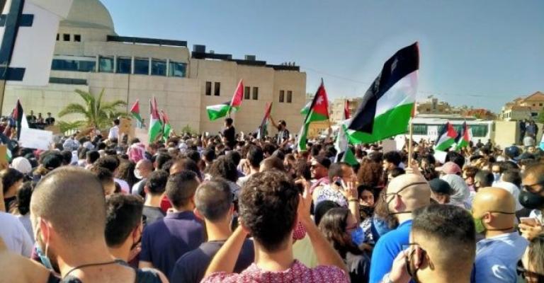 احتشد عدد من الأردنيين أمام مسجد الكالوتي قرب السفارة الاسرائيلية في الأردن، ظهر اليوم السبت، نصرة لعملية طوفان الاقصى التي تنفذها المقاومة الفلسطينية منذ صباح اليوم. وحمل المشاركون في الوقفة شعارات