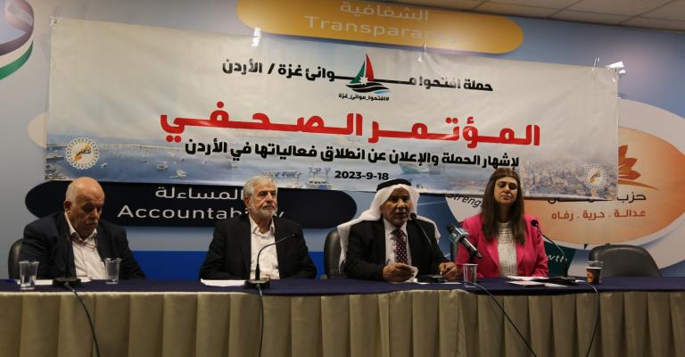 أشهرت حملة "افتحوا موانئ غزة" في الأردن حملتها بهدف كسر الحصار عن غزة خلال مؤتمر صحفي عقد ظهر اليوم الاثنين في مقر حزب العمال الأردني. وقال رئيس الحملة المهندس وائل السقا إن الحملة تأتي للمطالبة بفك