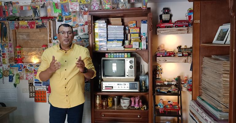 مجرد أن تفتح باب منزله تغزوا مخيلتك مئات الذكريات إذا كنت من مواليد الثمانينات فما دون، انه المواطن الاردني أحمد الأخرس الذي حول مستودعا قريبا من منزله إلى كبسولة زمنية بعد أن جمع المئات من القطع