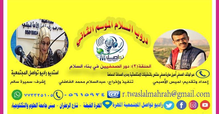 ضيف الحلقة : أصيل سارية إعداد وتقديم : لميس الأصبحي radio albalad · تواصل 2 : دور الصحفيين في بناء السلام