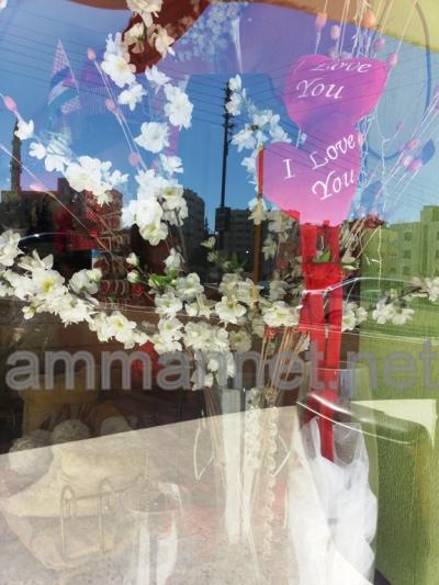 ومع قرب عيد الحب الذي يصادف يوم الجمعة، بدأت مظاهر الاحتفال بتزيين ديكورات متاجر الزهور باللون الأحمر، بهدف لفت نظر الزبائن والمارة وتشجيعهم على شراء الورود".