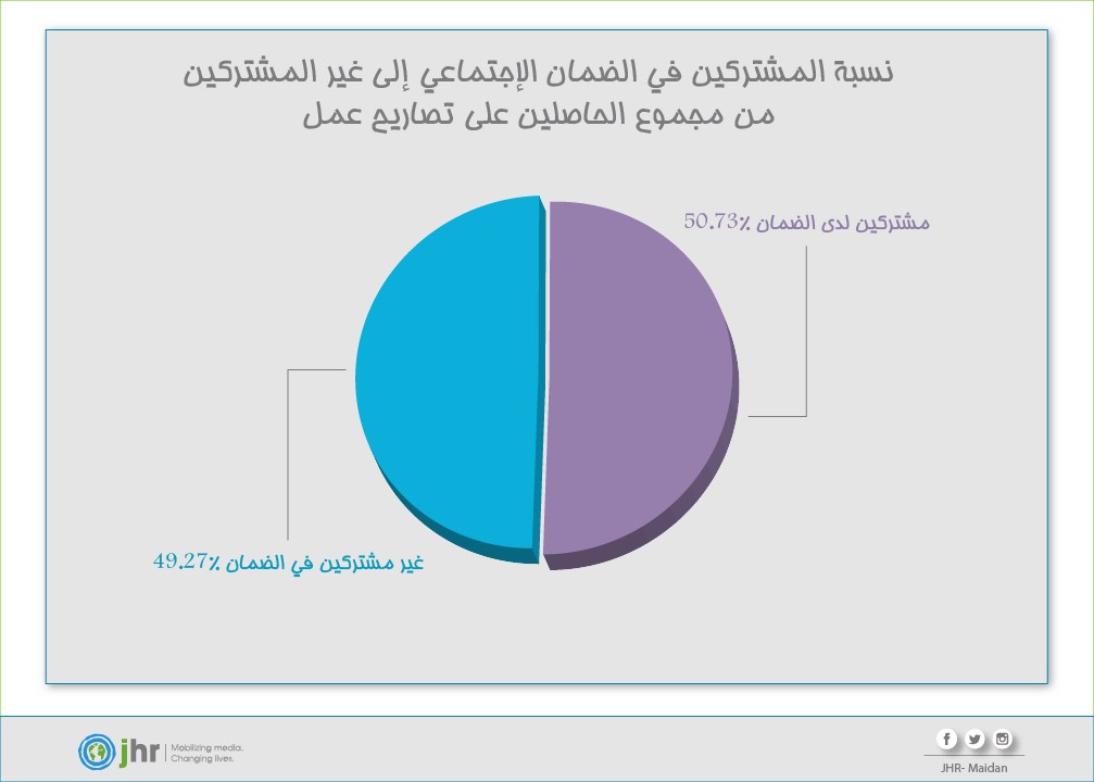 وبحسب وزارة العمل فإن (320) ألف عامل مهاجر حصلوا على تصاريح عمل، بينما أظهرت البيانات لدى موسسة الضمان الإجتماعي أن المشتركين غير الأردنين لديها (162,325عامل)، أي أن وحسب البيانات بين الوزارة والمؤسسة، هناك ما يقارب (157,675عامل) حصل على تصريح عمل لكنه لم يشترك في الضمان.