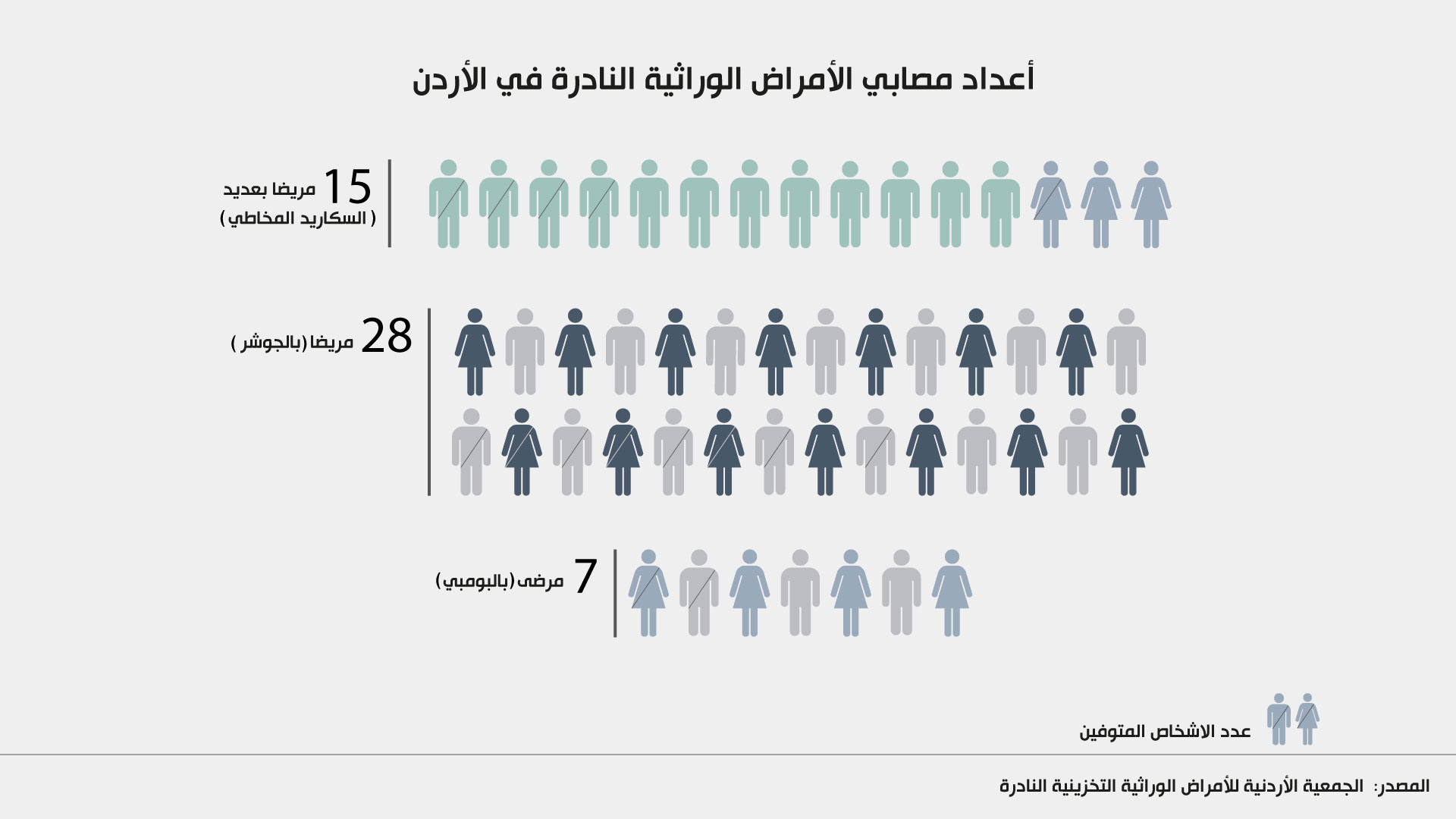 من جانبه، يقول المهندس عماد المومني رئيس الجمعية الأردنية للأمراض الوراثية التخزينية النادرة التي تأسست العام الماضي، إنه لا يوجد حصر شامل لأعداد حالات هذه الأمراض في الأردن.