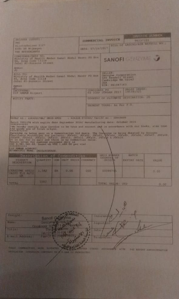 يقول مدير التسويق في سانوفي جنزايم إبراهيم صبحى إن الشركة تنسق مع الأطباء لمعرفة كمية العلاج التي يحتاجها كل مريض حسب وزنه وبعد الحصول على موافقات الجهات الرسمية يتم الشحن إلى الأردن.