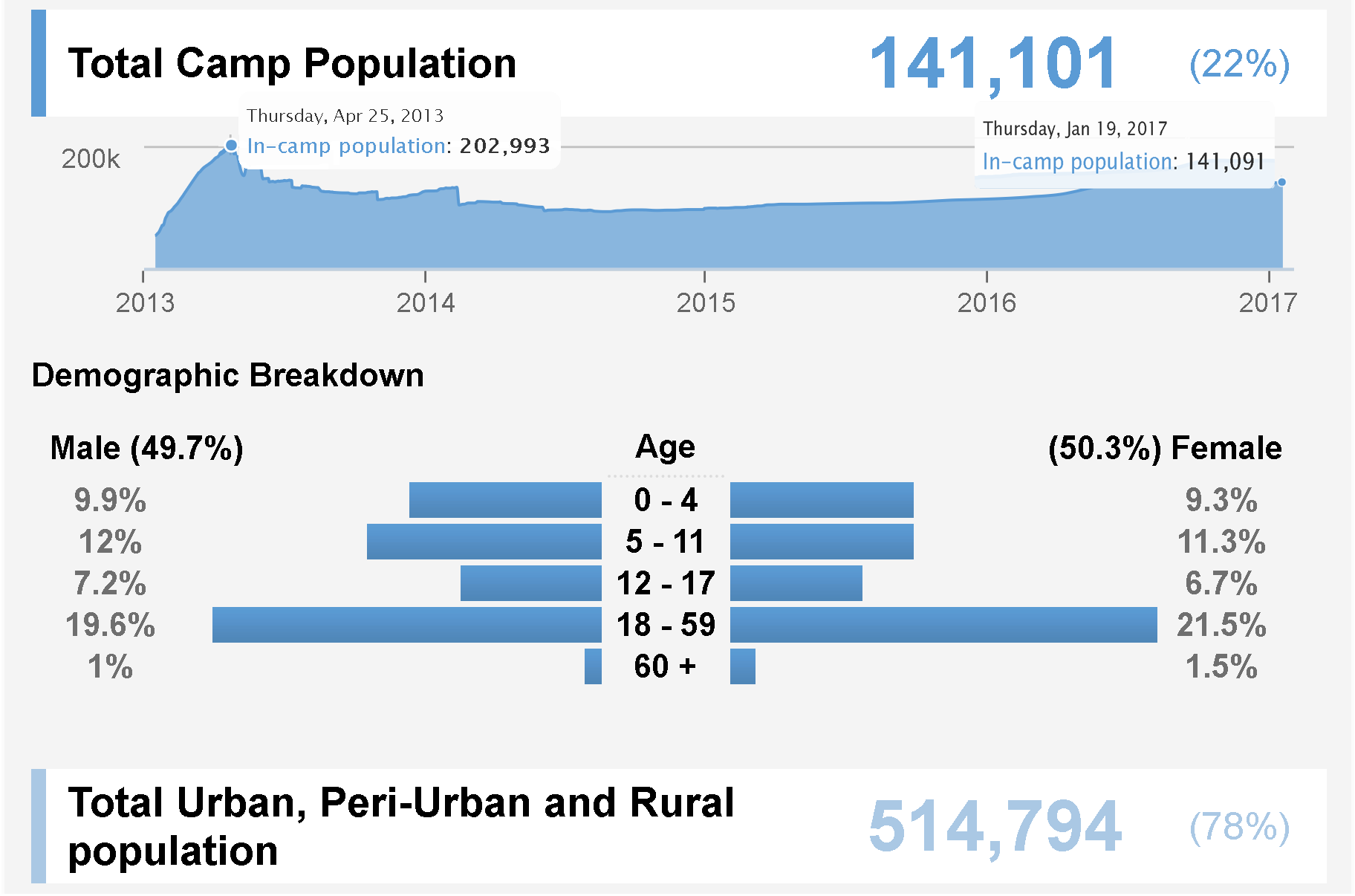 بتاريخ 07/11/2016 بلغ عدد ساكنية 79979 لاجئ سوري يسكن جميعهم في منازل متنقلة "كرفانات" تبرعت بها منظمات دولية اغاثية وجهات خيرية.