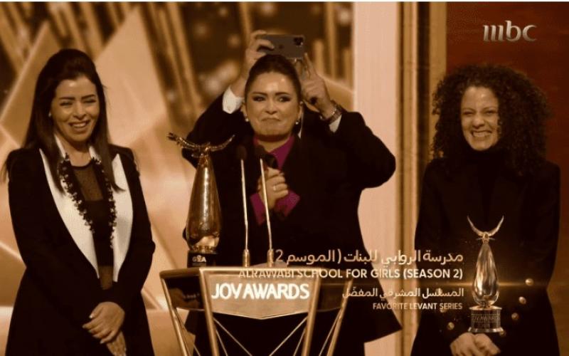 حصد المسلسل الأردني مدرسة الروابي الجائزة الاولى كافضل مسلسل في الشرق الاوسط في حفل توزيع جولئز جوي اوردز الان في الرياض.