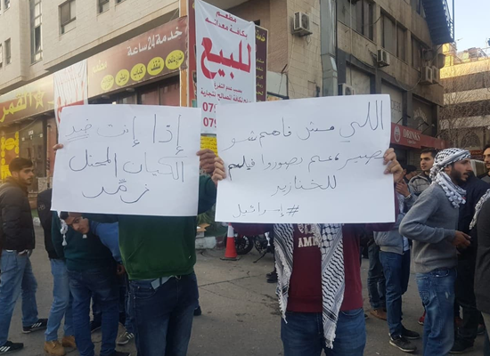 ورفع المحتجون لافتات تطالب بوقف تصوير المسليل، والذي يظهر شوارع عمان على أنها شوارع مدينة "تل ابيب" معتبرين أن هذا جزء من التطبيع مع العدو الاسرائيلي.