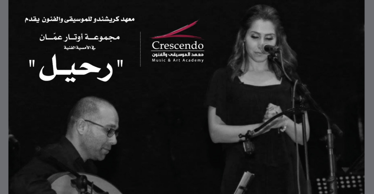 يقدم معهد كريشندو للموسيقى والفنون "أوتار عمان للأعواد" بقيادة الأستاذ عمر عباد في الحفل الموسيقي الغنائي "رحيل" الذي سيقام على مسرح كلية التراسنطة في جبل اللويبدة يوم السبت 10 اب 2024 الساعة الثامنة