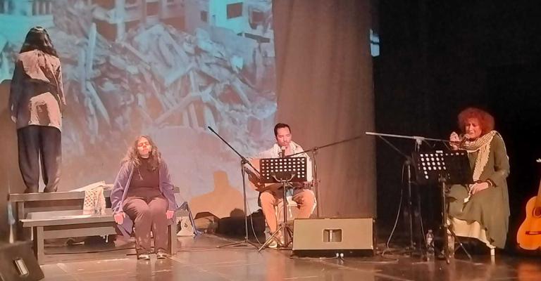 جاء العرض المسرحي الموسيقي "يا طالعين الجبل"، الذي عرض مساء أمس الأربعاء، في مسرح الشمس، احتفاءً باليوم العالمي للمسرح منسجماً مع فكرة العمل الذي يسلط الضوء على ما يحدث في قطاع غزة من موت وقتل وتهجير