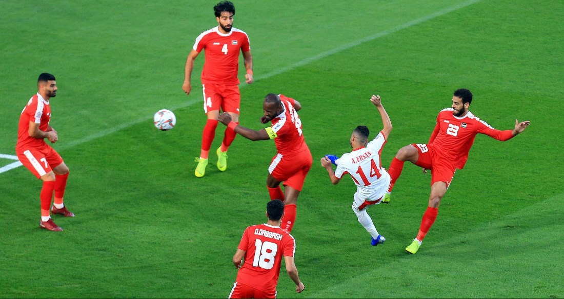تعادل المنتخب الوطني لكرة القدم مع نظيره الفلسطيني بدون أهداف في المباراة التي أقيمت اليوم الثلاثاء على ستاد محمد بن زايد بالعاصمة الاماراتية ابو ظبي.