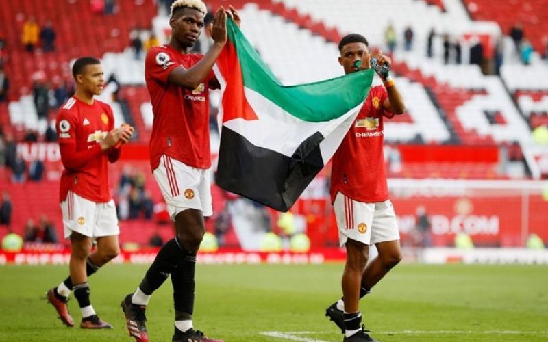 وظهر بوغبا وتراوري وهما يحملان العلم الفلسطيني بعد نهاية مباراة فريقهما أمام فولهام وذهبا لتحية الجماهير التي صفقت لهما ولبقية لاعبي اليونايتد.