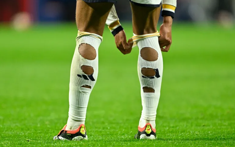 بل إن بيلينغهام بالغ في تمزيق الجوارب سواء مع فريقه ريال مدري الإسباني أو منتخب بلاده، بما في ذلك خلال كأس العالم 2022 في قطر، وسار على نهجه زميله بالمنتخب بوكايو ساكا.