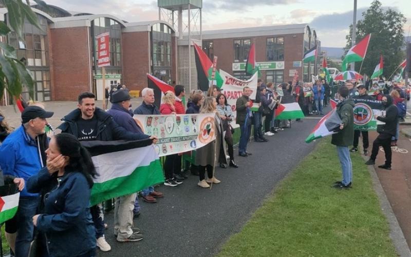 وتجمهر إيرلنديون أمام بعثة منتخب الاحتلال الذي جاء ليواجه منتخبهم في الملحق المؤهل لبطولة أمم أوروبا المقبلة.