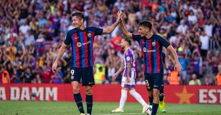 اكتسح فريق برشلونة بلد الوليد بنتيجة (4-0) مساء اليوم الأحد، ضمن منافسات الجولة الثالثة من الدوري الإسباني لكرة القدم. وسجل لبرشلونة اللاعب ليفاندوفسكي الهدف الأول في الدقيقة 24، قبل أن يضيف بيدري