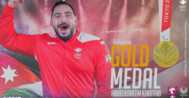 توج لاعب المنتخب الوطني لرفع الأثقال عبدالكريم خطاب بالميدالية الذهبية الأحد، في دورة الألعاب البارالمبية (طوكيو2020) لفئة وزن تحت 88 كغم. وبحسب الموقع الإلكتروني للجنة الأولمبية الأردنية فإن الأردن